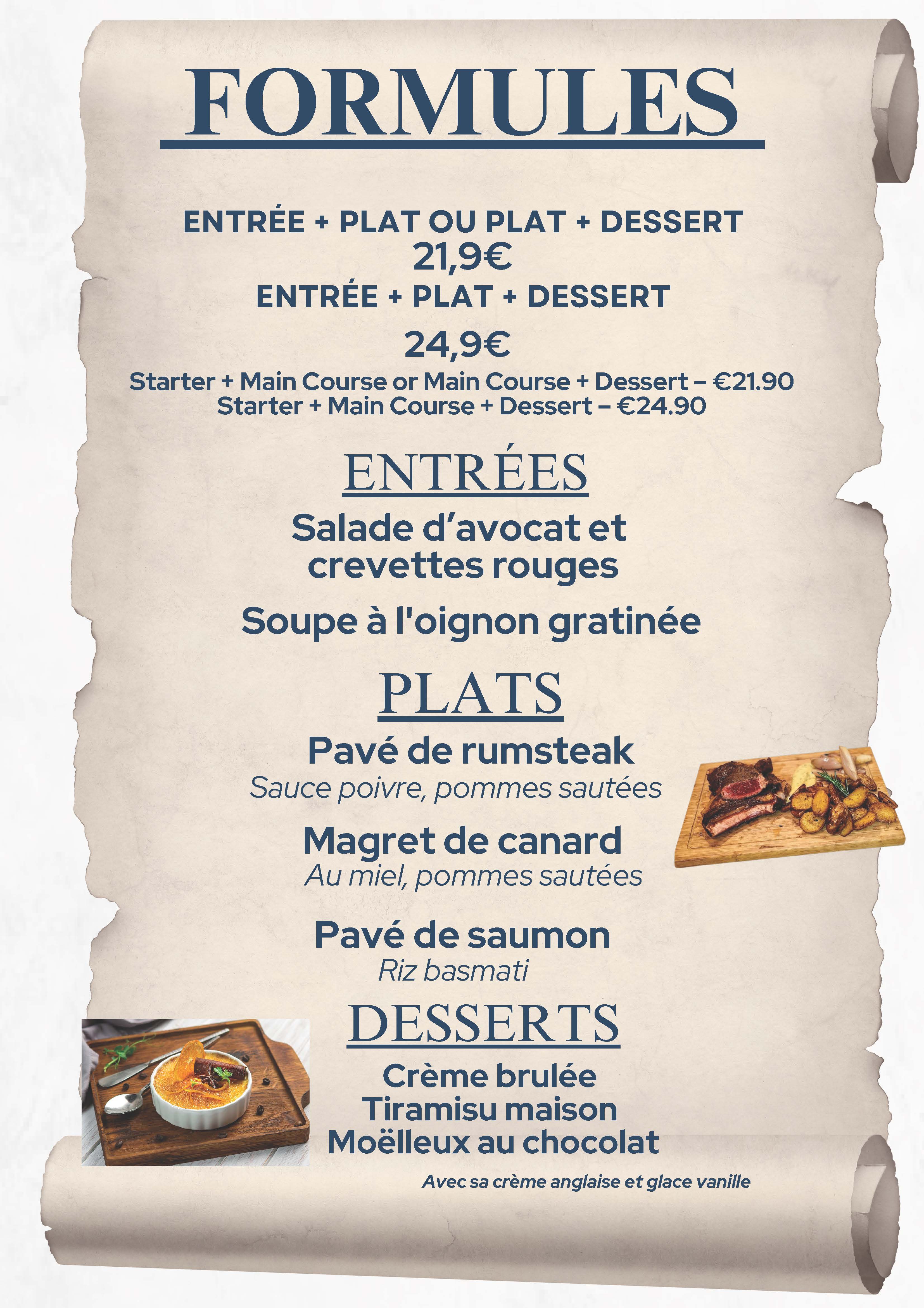 Menu Spécial Saint Valentin